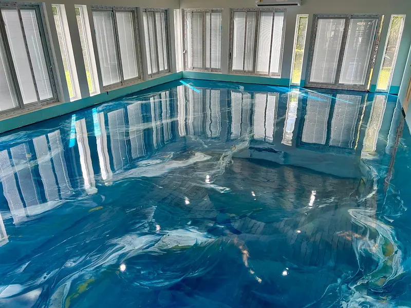 is a high-end, artistic flooring system created by combining tinted epoxy with metallic pigments. When poured and manipulated, the pigments move and flow in the resin, forming unique 3D effects that resemble marble, swirling oceans, clouds, or polished stone. The result is a seamless, glossy, luxurious finish that is durable, easy to clean, and completely customizable in color and design. No two metallic epoxy floors are ever the same—each one is a one-of-a-kind work of art.