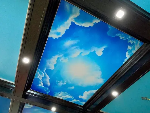 is a modern, customizable ceiling system that enhances both aesthetics and functionality. It offers endless design options—colors, textures, and even custom prints—making it perfect for residential and commercial spaces. Stretch ceilings are fire-resistant, mold-resistant, and uniquely engineered to hold back gallons of water in the event of a roof leak, giving you time to repair the issue before water enters the building. This makes it one of the safest, cleanest, and most versatile ceiling solutions available today.